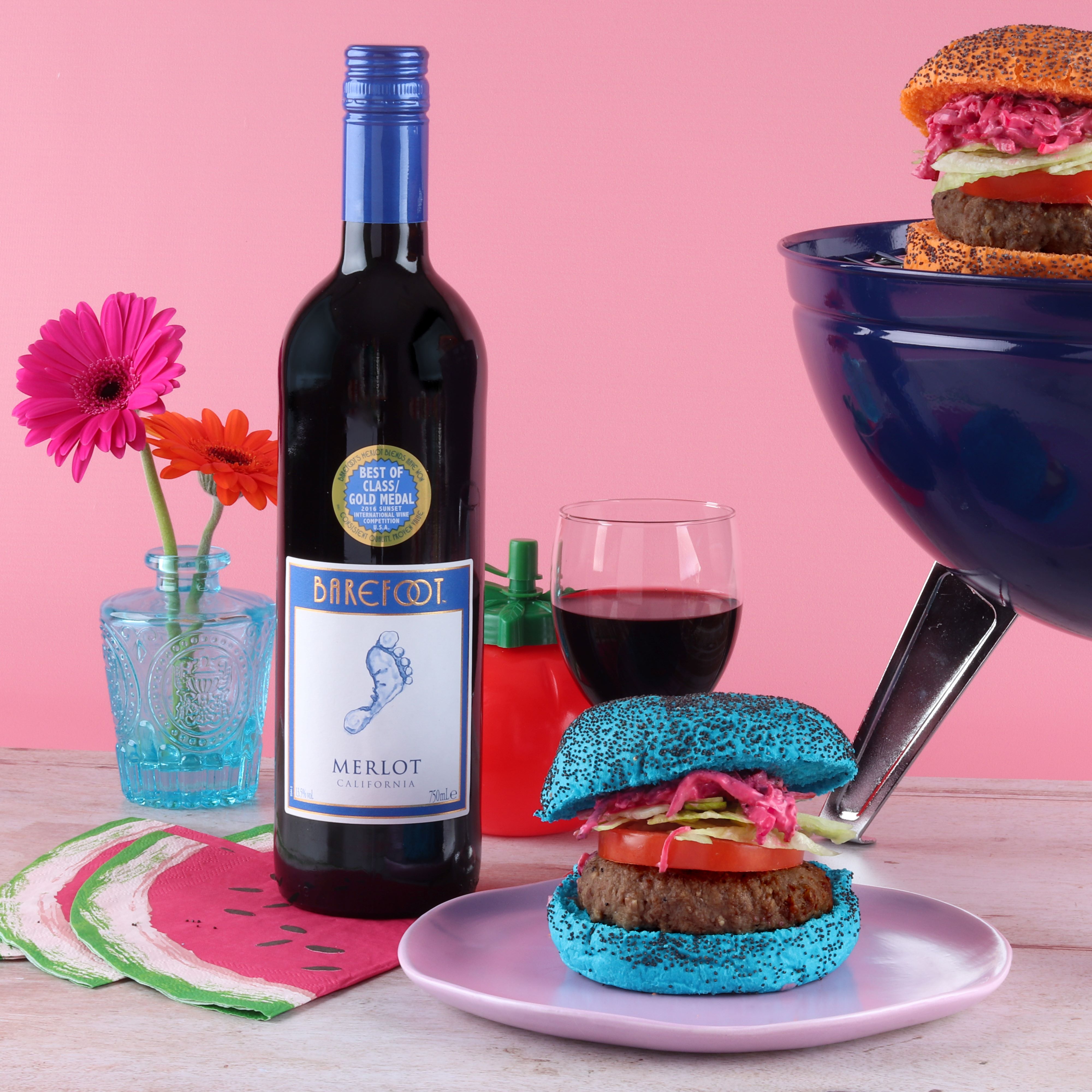 1. Barefoot Merlot & Burgers: There's nothing more quintessentially BBQ than a juicy burger. For these sizzling beauties, we recommend pairing with a glass of Barefoot Merlot. Its succulent dark fruit flavours and hints of chocolate create a beautiful harmony with the richness of the beef. It's a match made in BBQ heaven!